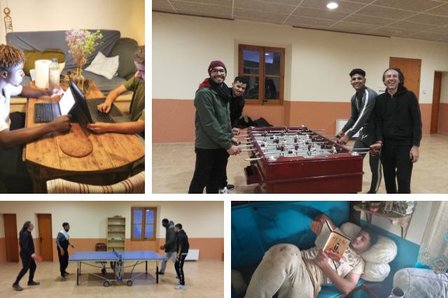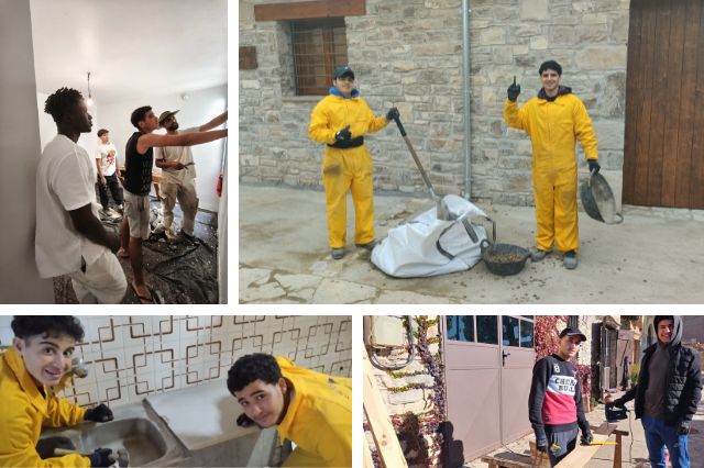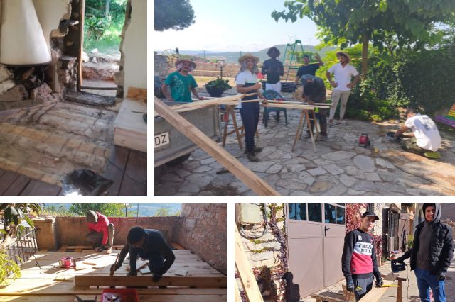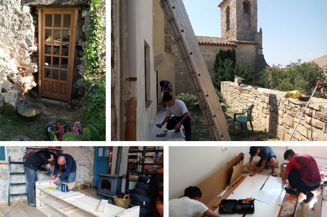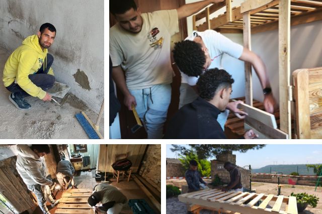 Activació d’una escola taller durant 6 mesos, amb un valor pedagògic especial: els mateixos estudiants han participat en la fabricació dels llits i mobles, mitjançant un taller de restauració i fusteria. Els estudiants han fet tasques de fusteria, pintura, paleta, llauner i electricista, sota les ordres dels professionals de cada matèria.