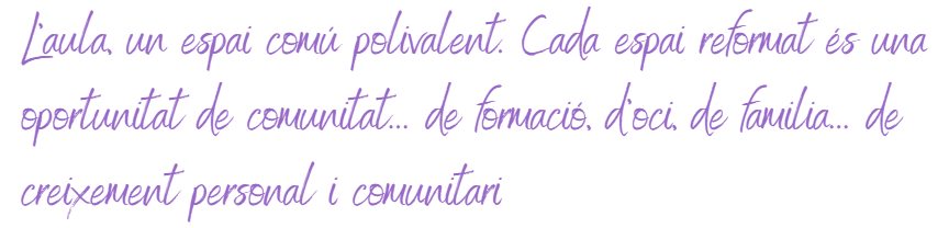 Adequació i millora d’espais comuns ja existents: jardí, terrassa, aula i zona d’estudi, cuina gran i sala d’estar.